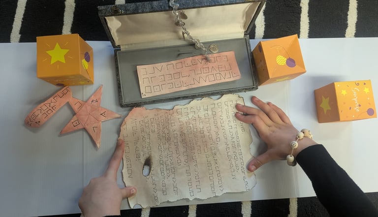 enfants de 10ans découvrent une langue secrète avec une série d'énigmes à résoudre